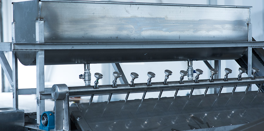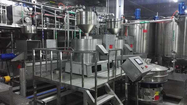 本生產(chǎn)線(xiàn)的調漿罐裝有攪拌裝置,在定量粉體喂料機的配合下將米漿調整到合適的狀態(tài),并防止米漿沉淀。本機的儲漿罐配有液位計和攪拌裝置,保證漿液不發(fā)生沉淀,布漿均勻。