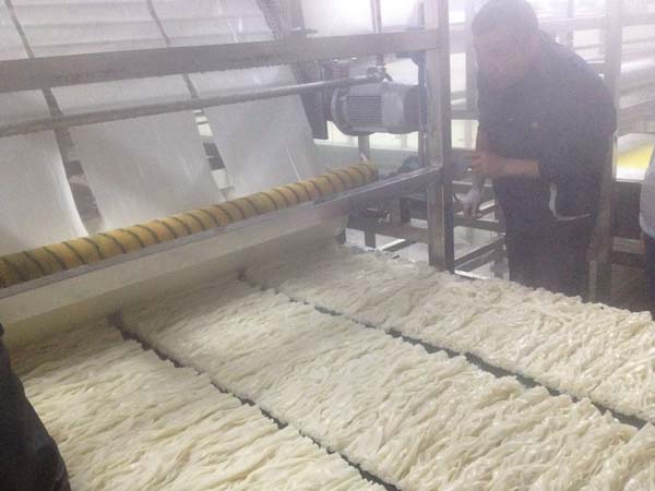 本生產(chǎn)線(xiàn)生產(chǎn)的產(chǎn)品薄厚均勻、熟化度一致、條形整齊,口感綿軟,彈性好。