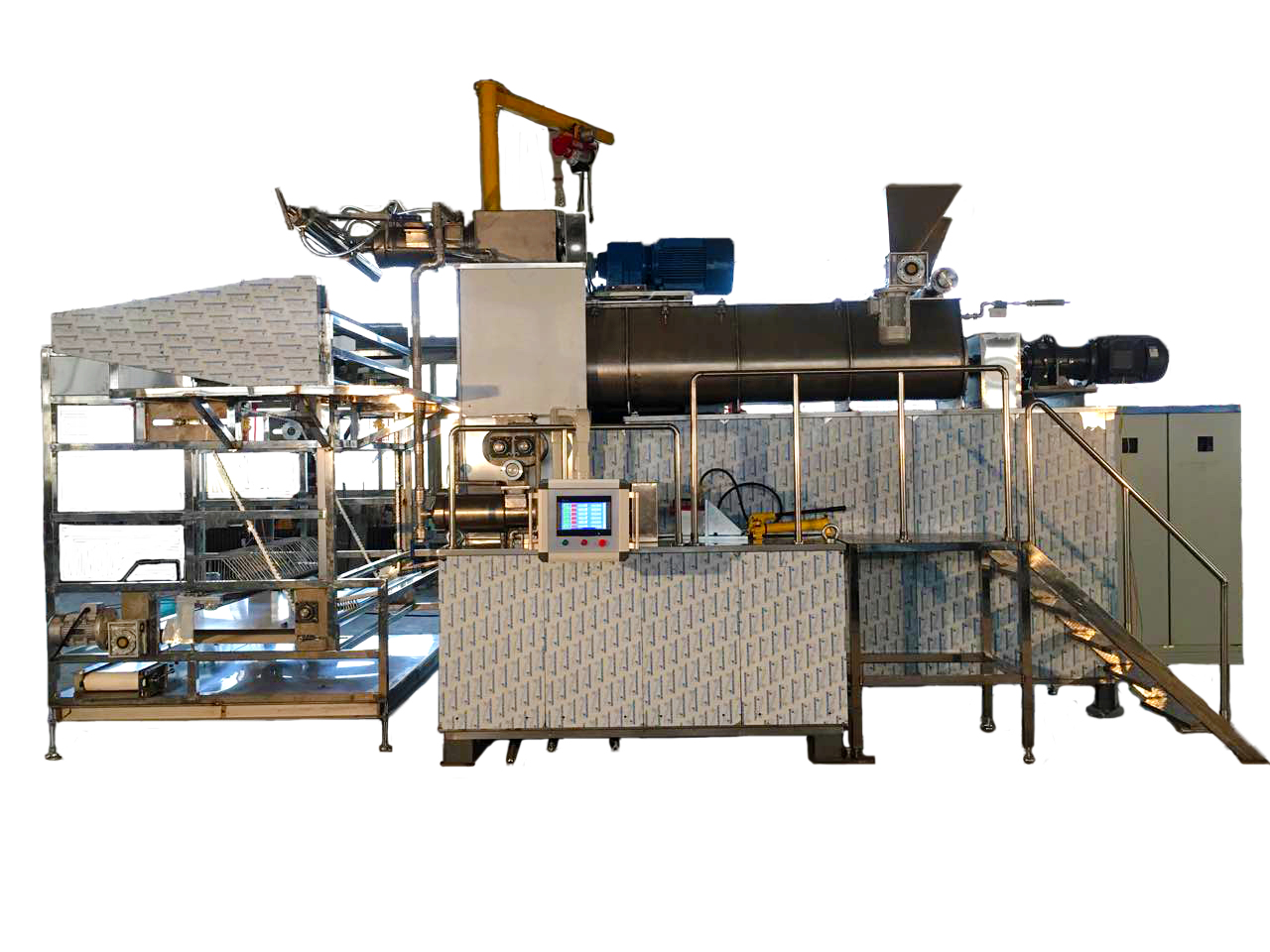 通過(guò)螺桿輸送使面團均勻、穩定的落入到擠出工序,輸送速度可調;