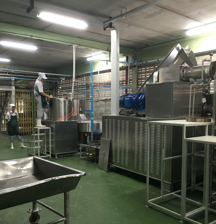 6、預糊化后的大米進(jìn)行擠出機進(jìn)行熟化及成型。