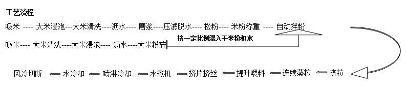 產(chǎn)品:以大米為主要原料,客戶(hù)可以根據需要選擇添加或者不添加部分淀粉,生產(chǎn)含水量為65%以上的鮮濕米粉。